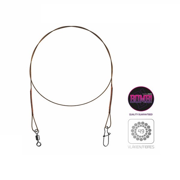 A BOMB! pergető acélhuzal a Delphintől, mely hihetetlen de 49 rozsdamentes szálból van fonva (megjelölése 7x7). Ez a huzal speciális a lágyságával és a rendíthetetlen ellenálló képességével az éles fogak és akadályokkal szemben. A tulajdonságainak köszönhetően bármilyen tevékenység könnyű és kellemes. Ráadásnak a tulajdonságainak köszönhetően lehetővé teszi a legóvatosabb ragadozó halak csalival való becserkelését.